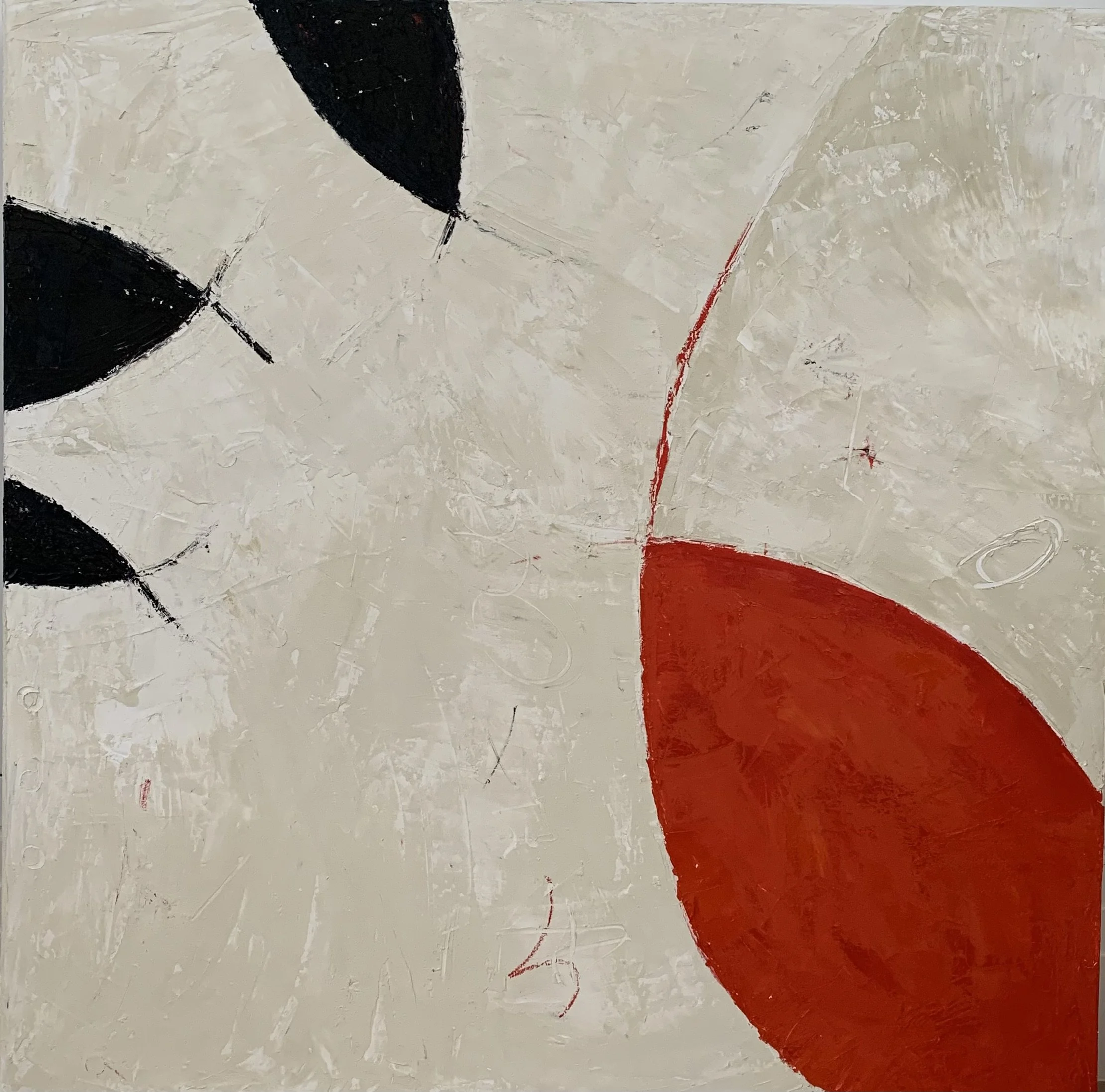 The black shapes feel like they’re expanding or breathing into each other, with that red cutting through as tension or interruption. The cream isn’t just background - it’s got its own history built up in layers. These forms don’t represent anything but they don’t feel abstract either. Something about them suggests growth or pressure.